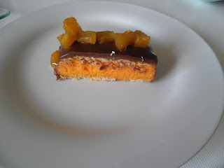 TARTA DE ZANAHORIAS Y COCO CON COBERTURA DE CHOCOLATE Y PIÑA FRESCA A LA MIEL