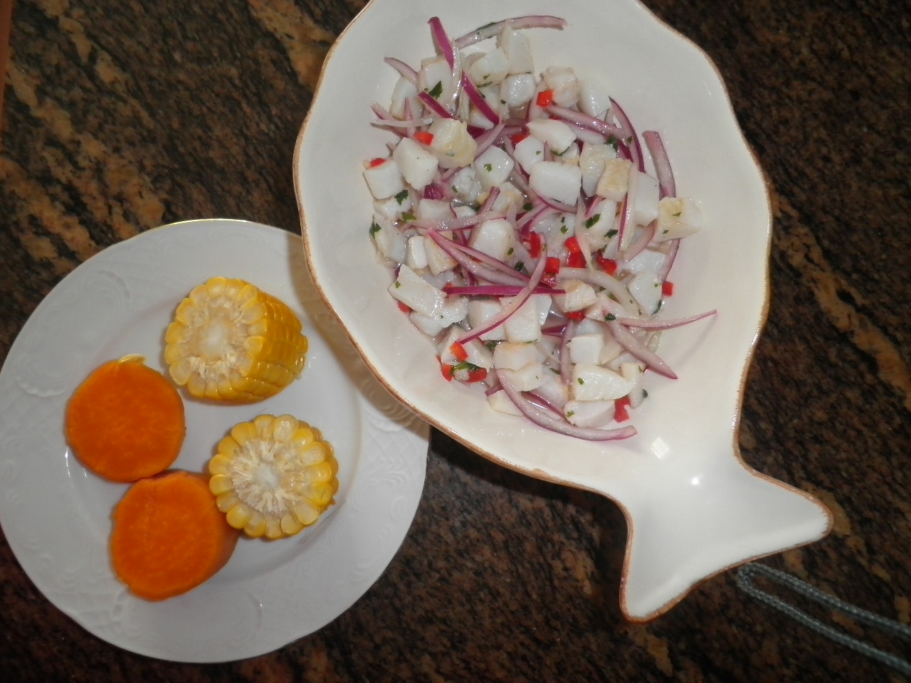 en rodajas el choclo y el camote que acompañarán a nuestro ceviche.