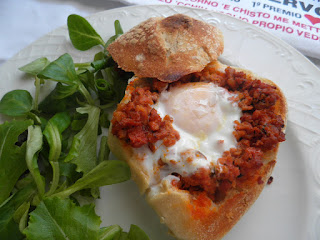 ResponderEliminarCuando hacíamos pan en el horno de leña del pueblo, en la época de la matanza, con el "picadillo" de los chorizos, haciamos una especie de "bollos preñaos", y cuando salian del horno, se les cortaba la coronilla, se les añadia uno o varios huevos fritos, y listos para comer. Cada comensal cogia su "nido" y se iba al patio, con el pan de la tapa se mojaba la yema y el resto se comia como un bocadillo. No se podía perder el tiempo fregando platos... había que hacer los chorizos , las morcillas... ¡Qué tiempos!