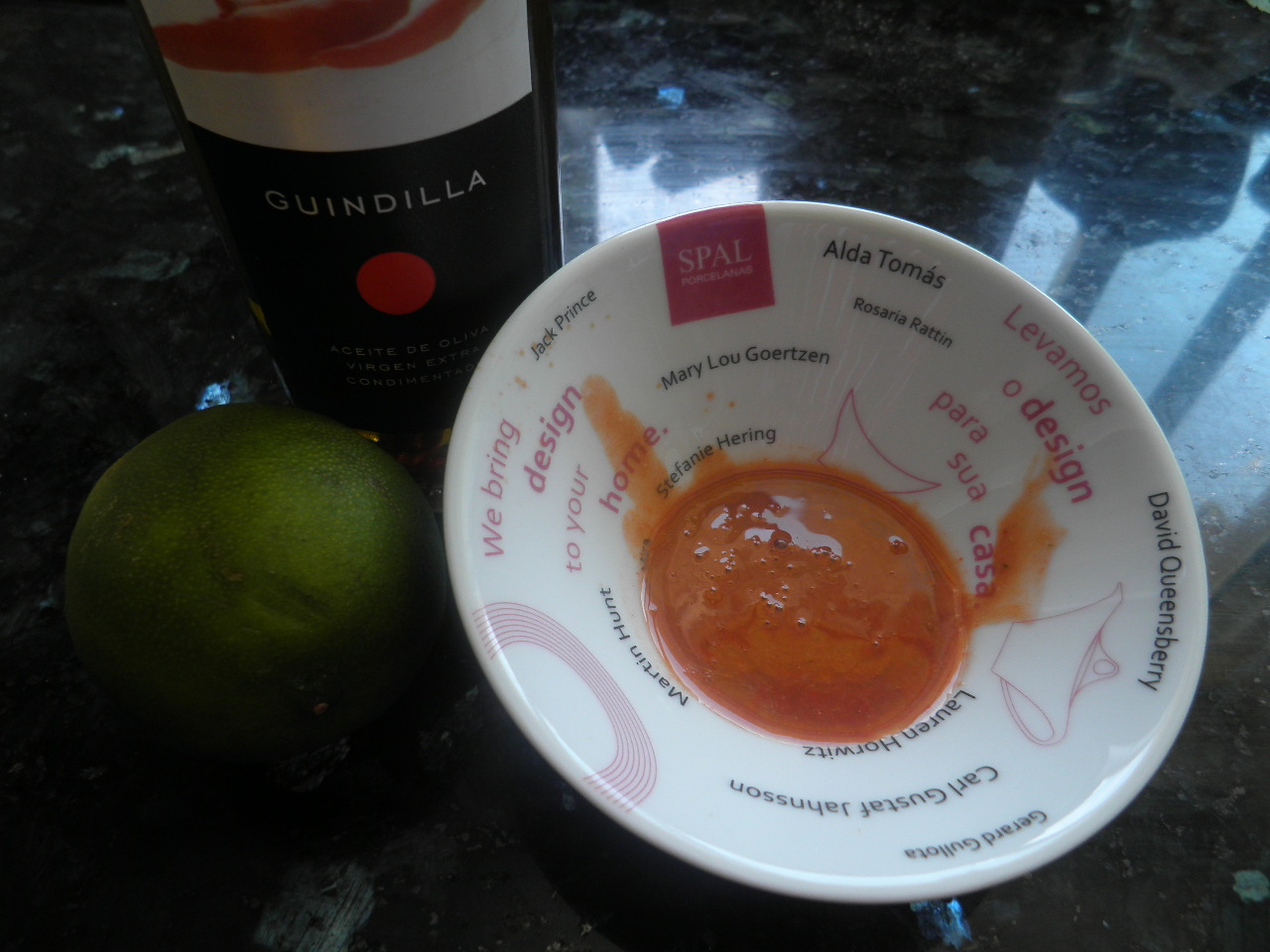 limón, el aove ( he utilizado uno de guindilla de “La Chinata”- extremeño) y la