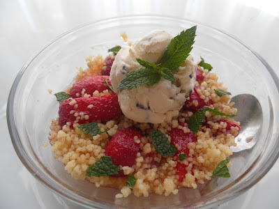 FRESAS CON CUSCÚS DULCE Y HELADO