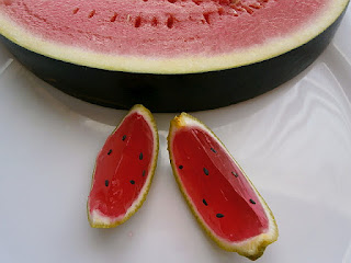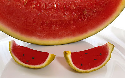 mini sandía y le colocamos unas semillas de sésamo negro “a modo de semillas”.