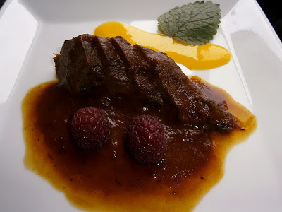 CORZO MARINADO CON SALSA DE ARÁNDANOS Y CURD DE MANDARINA