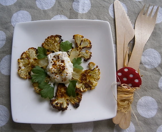 CHIPS DE COLIFLOR ASADA CON SALSA TAHINI