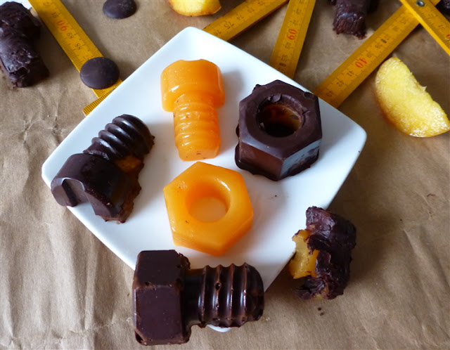 TORNILLOS DE MELOCOTÓN Y CHOCOLATE COMO BOMBONES