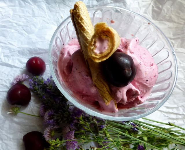 CEREZAS DEL JERTE , MIEL DE LAS HURDES Y LAVANDA EN UN HELADO