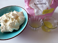 Ponemos la clara de huevo junto con 4 c.s de azúcar y empezamos a batir (batidora de varillas) añadimos el zumo y seguimos batiendo e incorporando poco a poco el azúcar. Estará en su punto cuando forme picos.