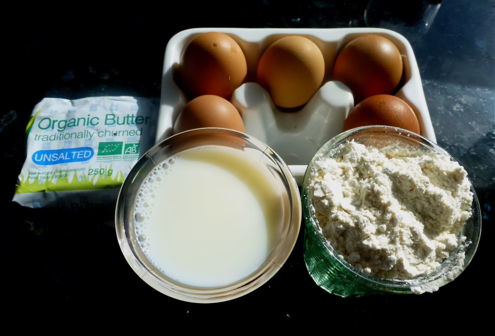 En un bol batimos (no mucho) los huevos, los mezclamos con la leche evaporada  y la nata y le añadimos la pimienta blanca,  y la sal (opcional).