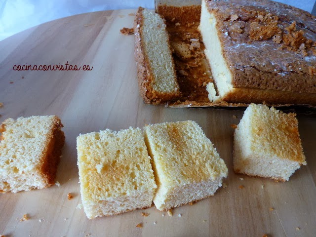 Cortamos cubos de unos 3X3 cm de lado.