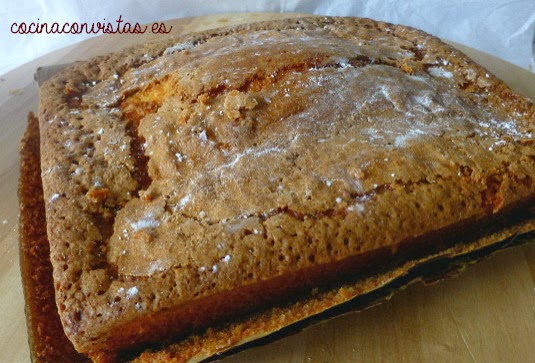 Precalentamos el horno a 165º,  vertemos la mezcla en un molde enharinado ( he usado uno de papel desechable) y cemos a 160º durante 30 minutos.