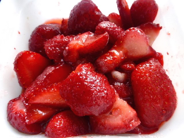 Lavamos y secamos las fresas, las troceamos y las ponemos a macerar junto con el azúcar por unas horas (mejor aún si las dejamos toda la noche). Trituramos las fresas y las pasamos por un colador de malla fina
