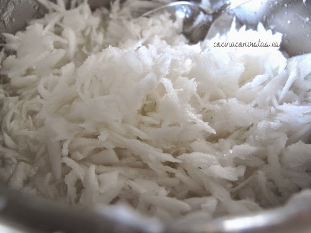 Rallamos la pulpa fresca del coco.