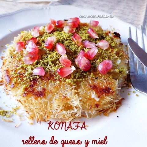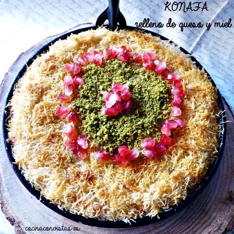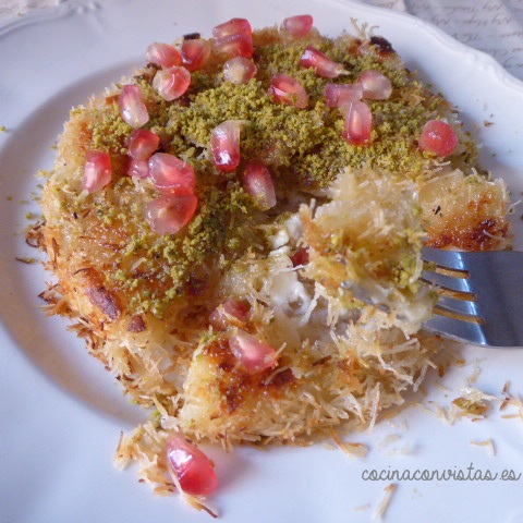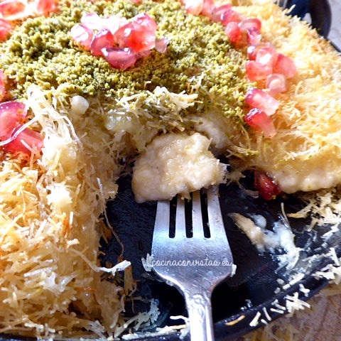 una tortilla) a nuestra Konafa para que se dore por el otro lado. Una vez