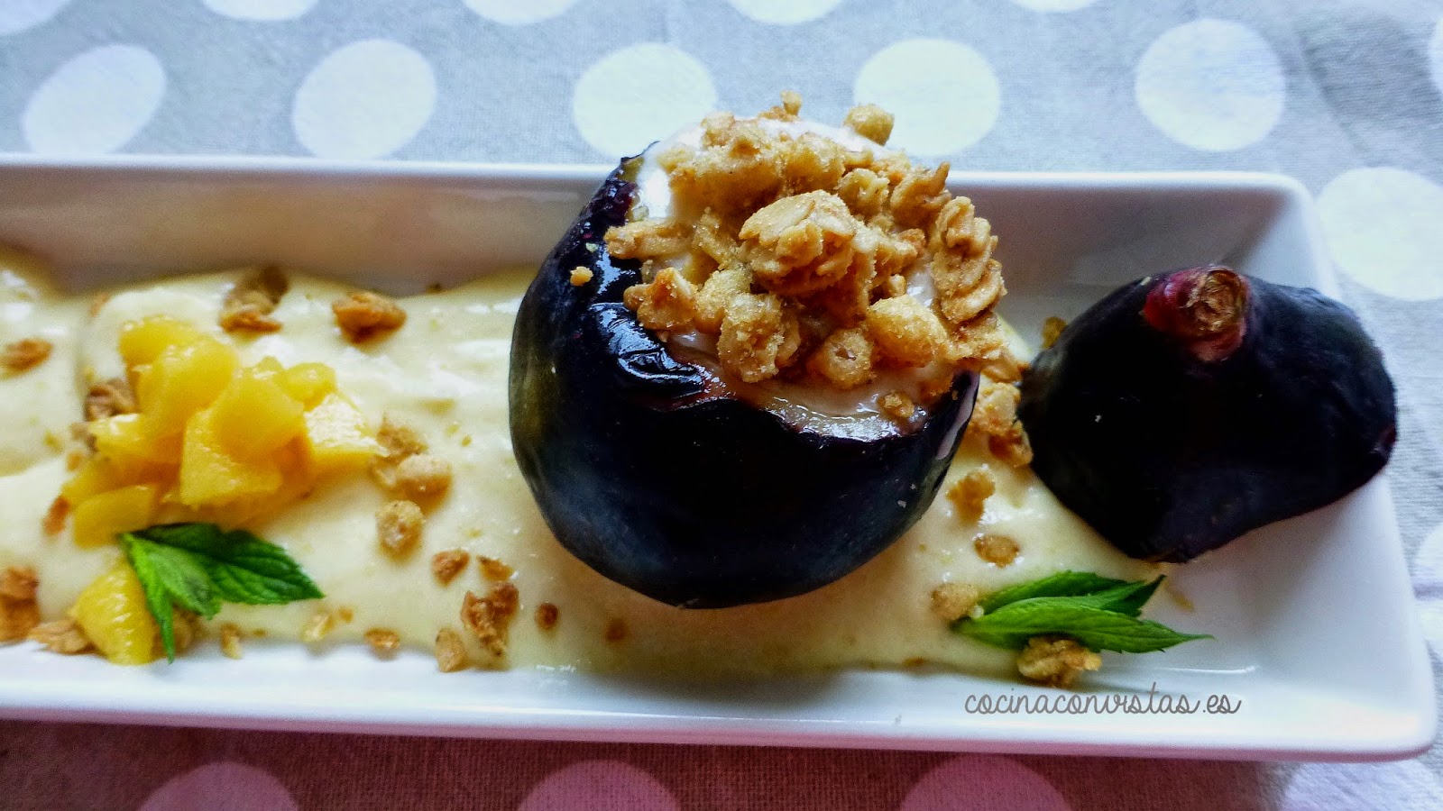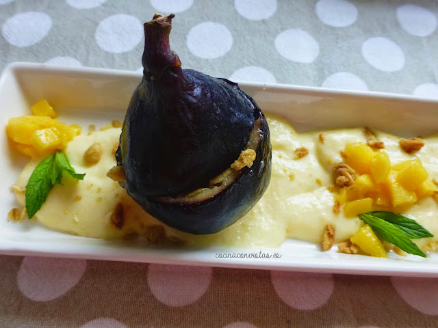 mango y encima colocamos nuestros higos rellenos.