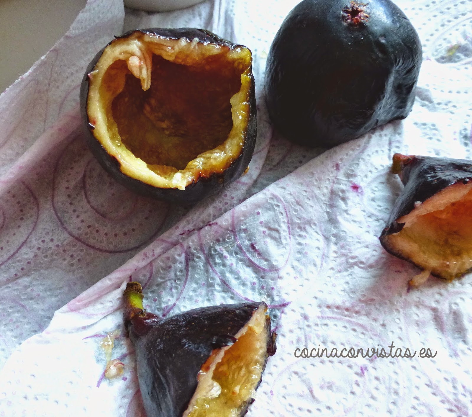 miel bien y refrigeramos. Mientras, cortamos la parte superior de los higos (a