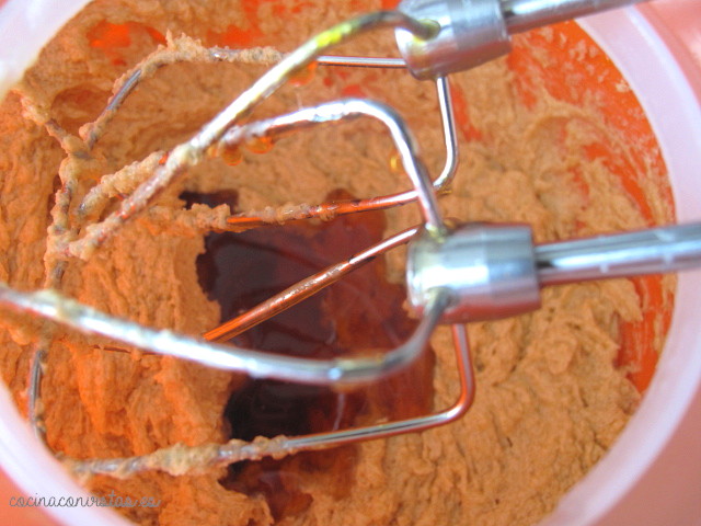 jengibre y se lo añadimos tamizando de tres veces a la mezcla de huevos, azúcar