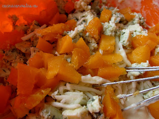 el calabacín, el queso, la cecina, un poquito de pimienta molida, el tomillo y