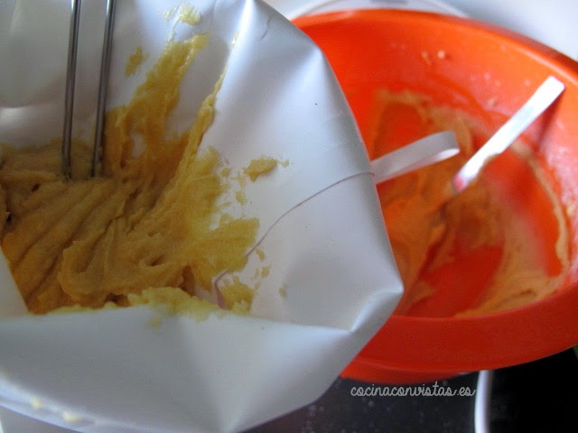 Cogemos pequeñas porciones de la masa y le damos forma de