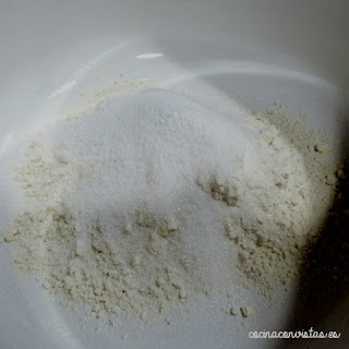 harina, polvo de hornear, sal, azúcar y pimienta. Cuando está todo bien