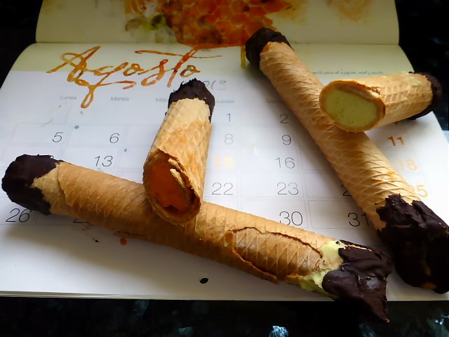 con helado de tiramisú y la otra con helado de crème brûlée y pera.