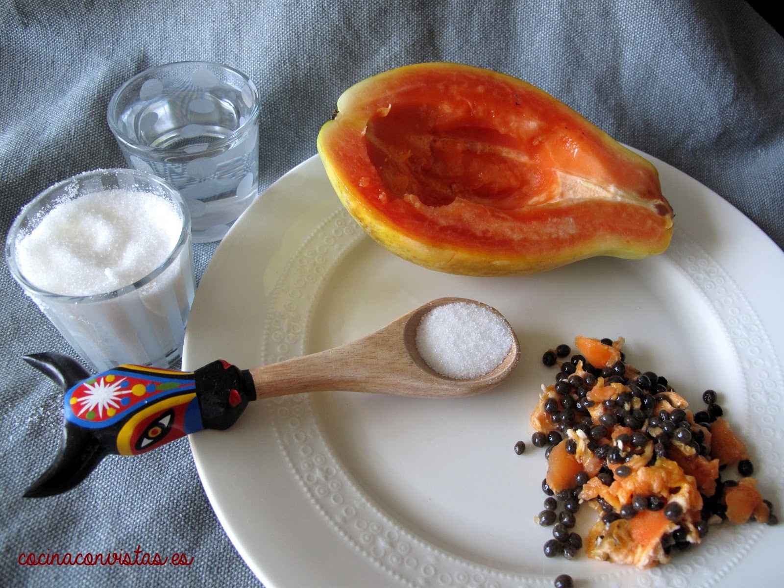 500 g   de papaya dura, muy dura, que no esté madura (esa que no comprarías para tomar ya)