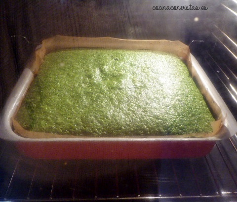 No sabe para nada a espinacas, predominan los sabores del coco y el limón. Si quieres una textura más abizcochada debes añadir 75 grs más de harina.