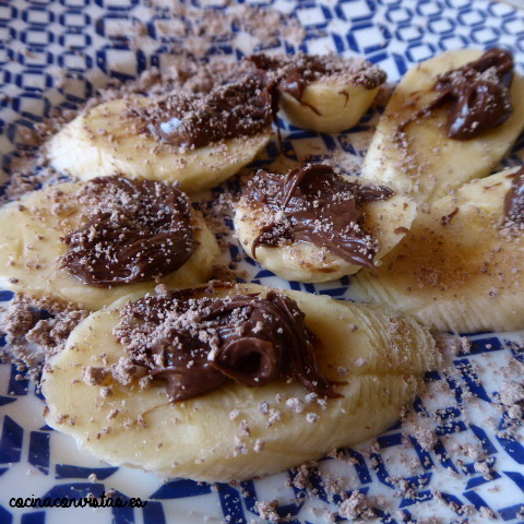 Decidimos probar nuestro polvo de Nutella con algo que nos encanta…plátanos y las dos dijimos aquello de Uuuummm!!!