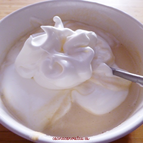 Añadir la nata suavemente e incorporar el merengue con movimientos envolventes.