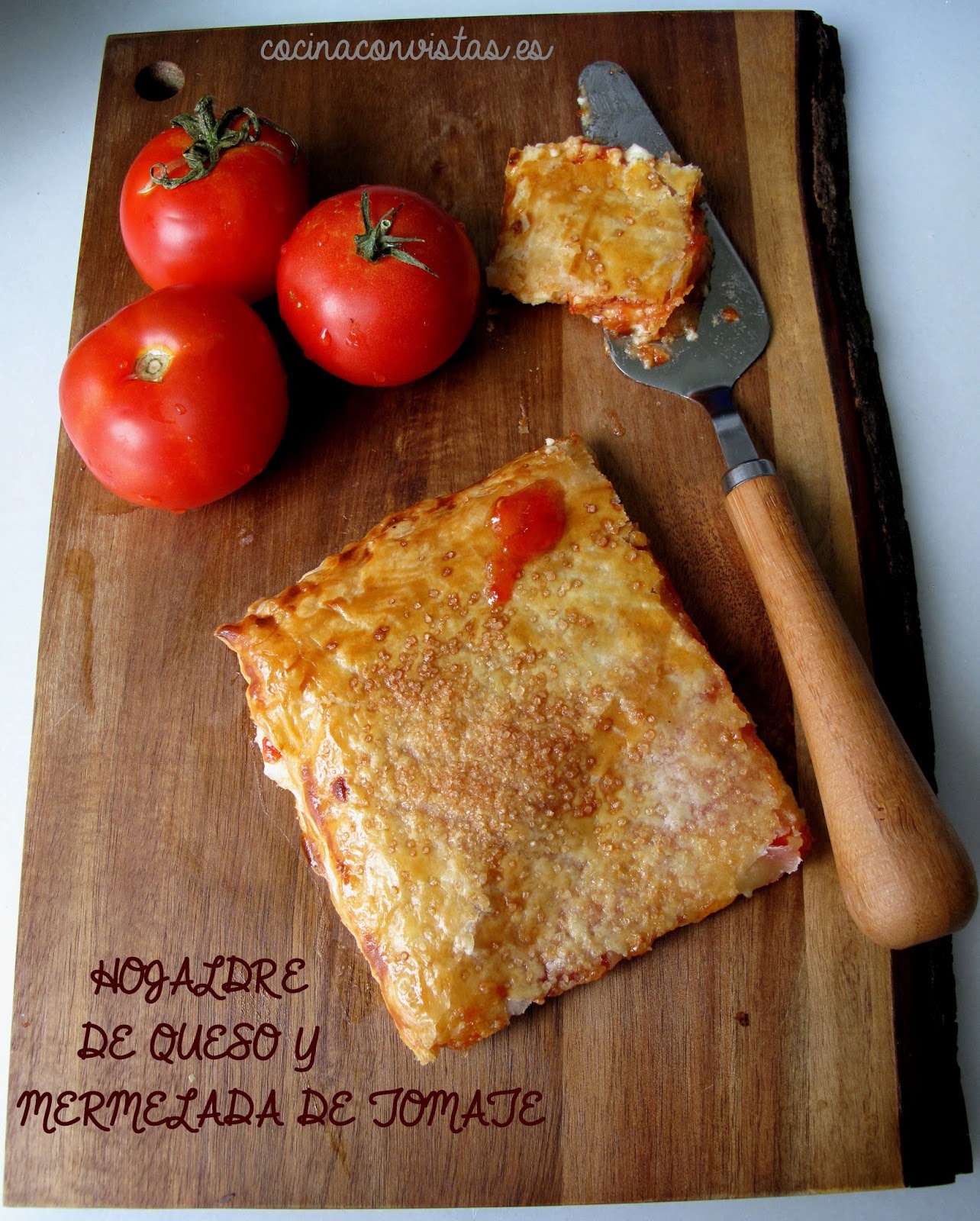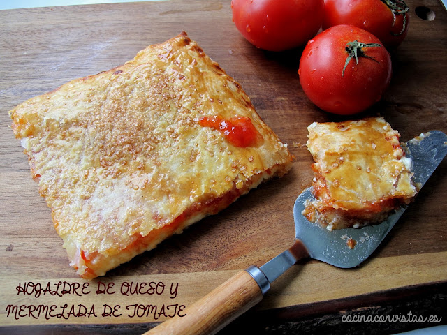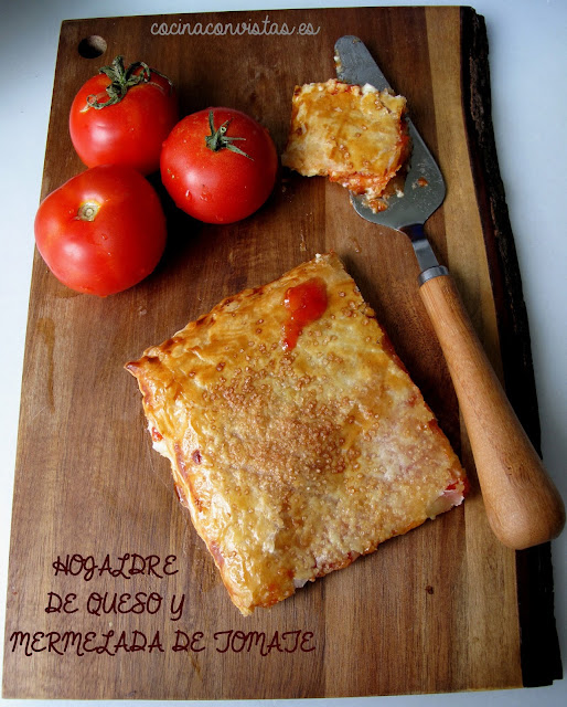 HOJALDRE DE QUESO Y MERMELADA DE TOMATE  con lavanda