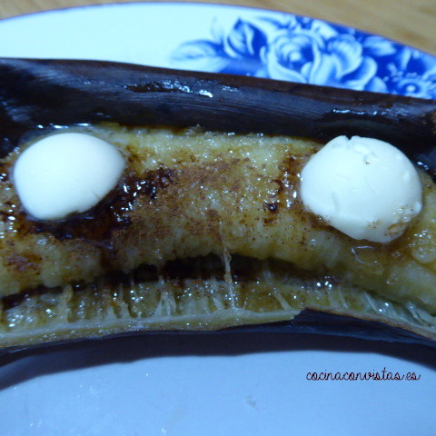 e introducimos en el horno a 180º hasta que los plátanos empiecen a abrirse (unos 35 minutos).